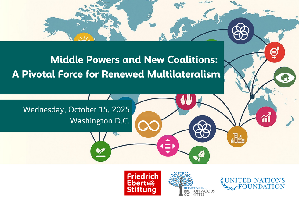 As the international financial architecture faces pressures from climate transition, debt distress, and geopolitical fragmentation, this high-level roundtable co-organized by FES New York, the Carnegie Endowment for International Peace, United Nations University-Centre for Policy Research, and Reinventing Bretton Woods Committee asks whether middle powers can anchor a more stable and equitable global order. The discussion will examine the feasibility of a middle power-centered order, the coalitional strategies through which middle powers can exercise collective agency, and the institutional models through which they are already innovating in development cooperation and multilateral reform.